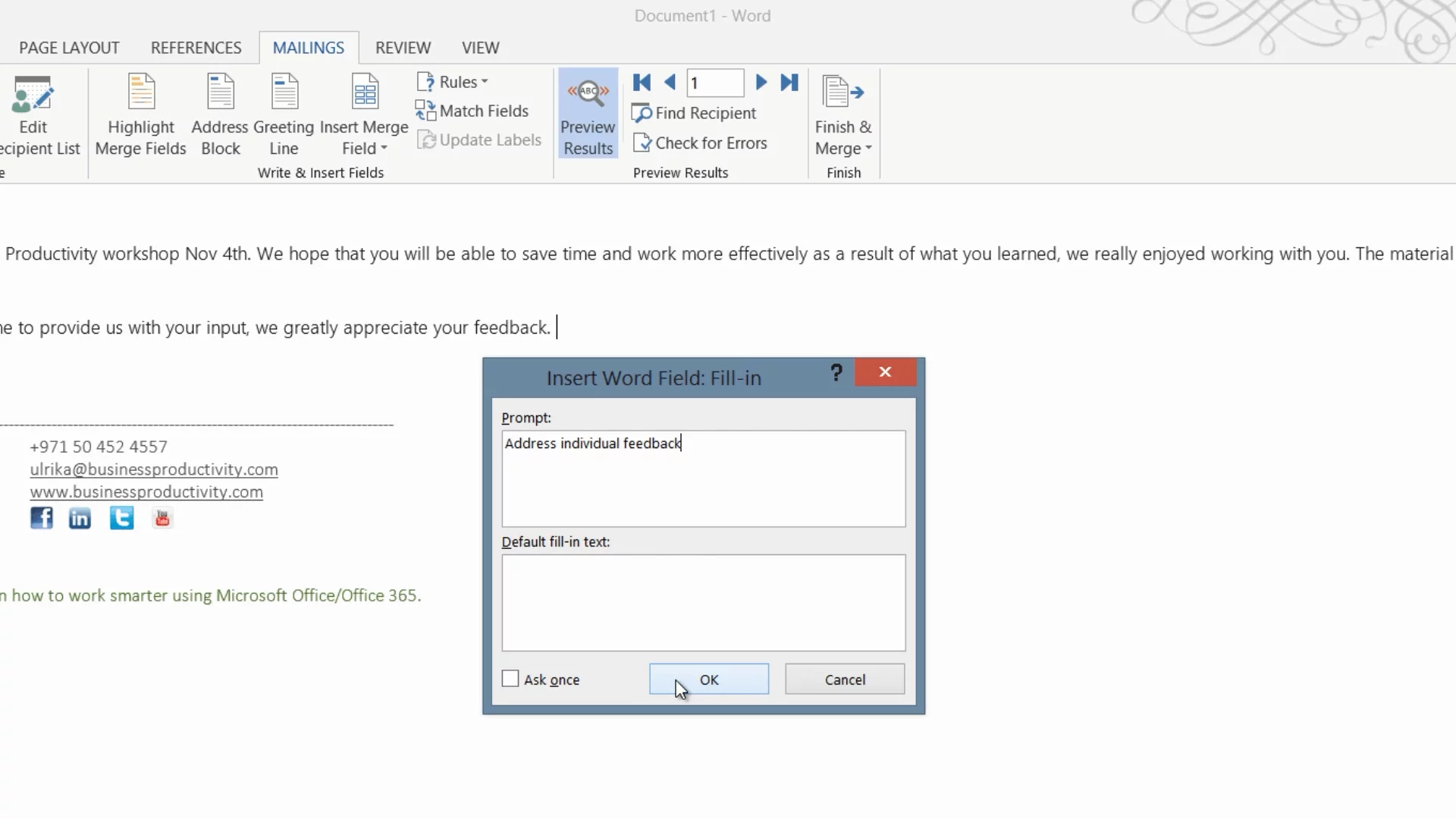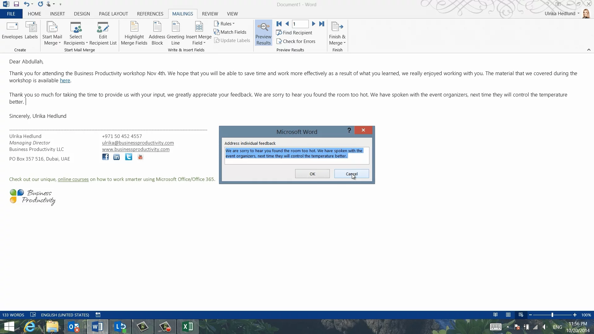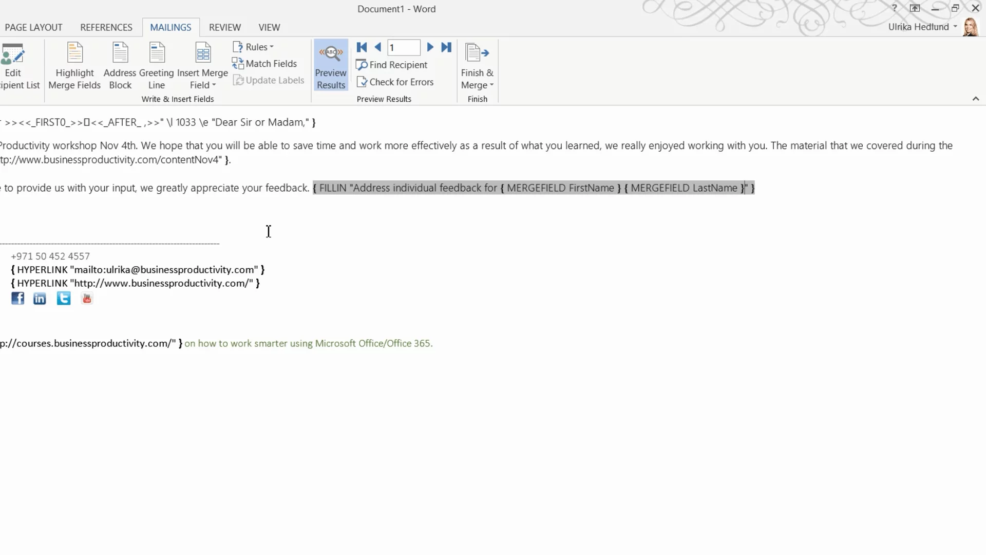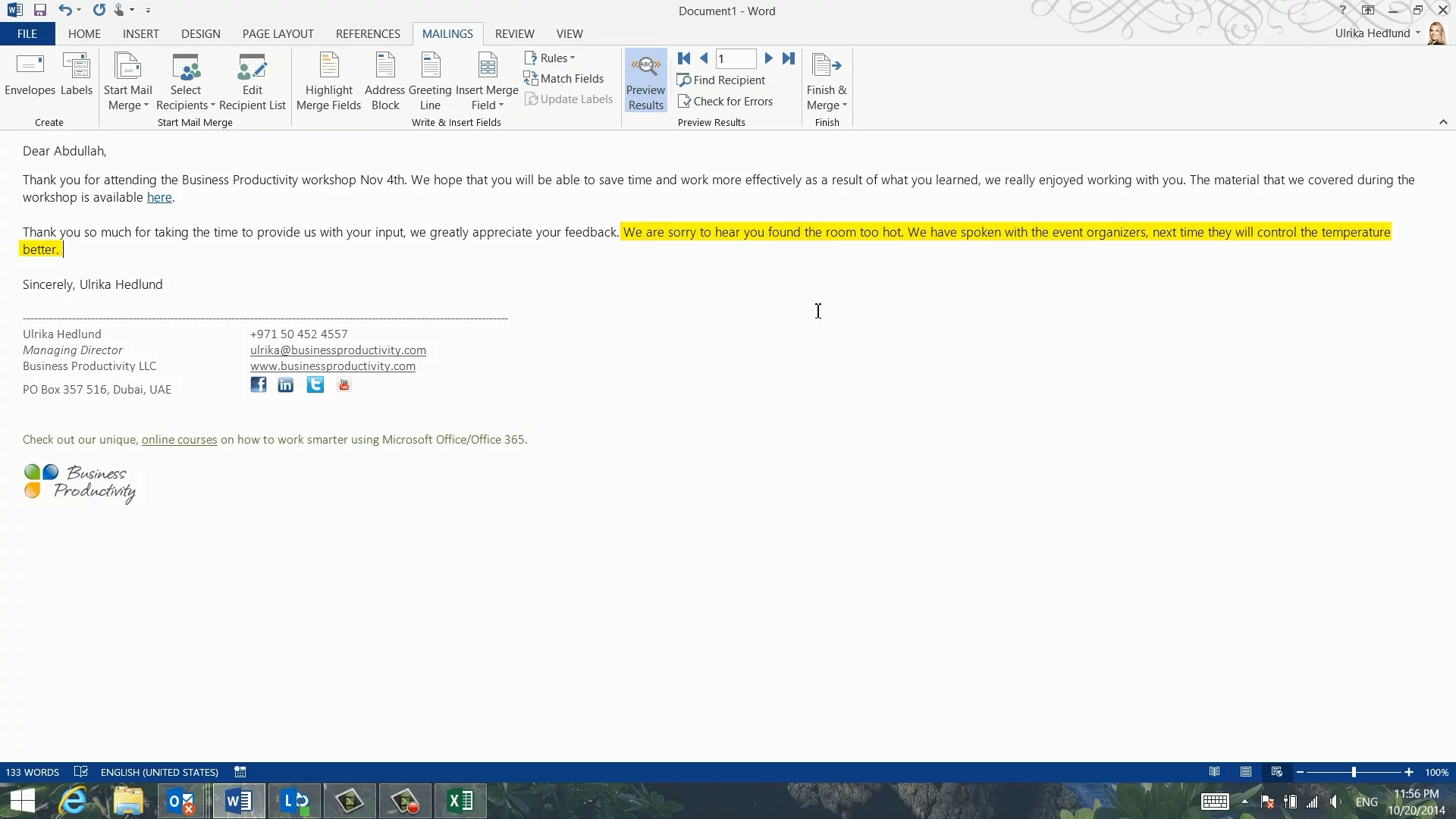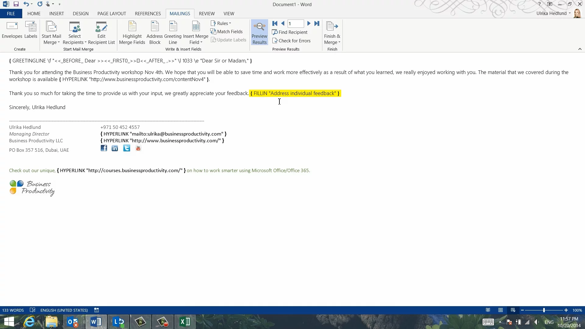 In this video, you will learn how to use “Mail Merge” in Word 2013 to automate the process of personalizing multiple letters. You’ll also learn how to add some flexibility to your letter so that you can use the template multiple times.