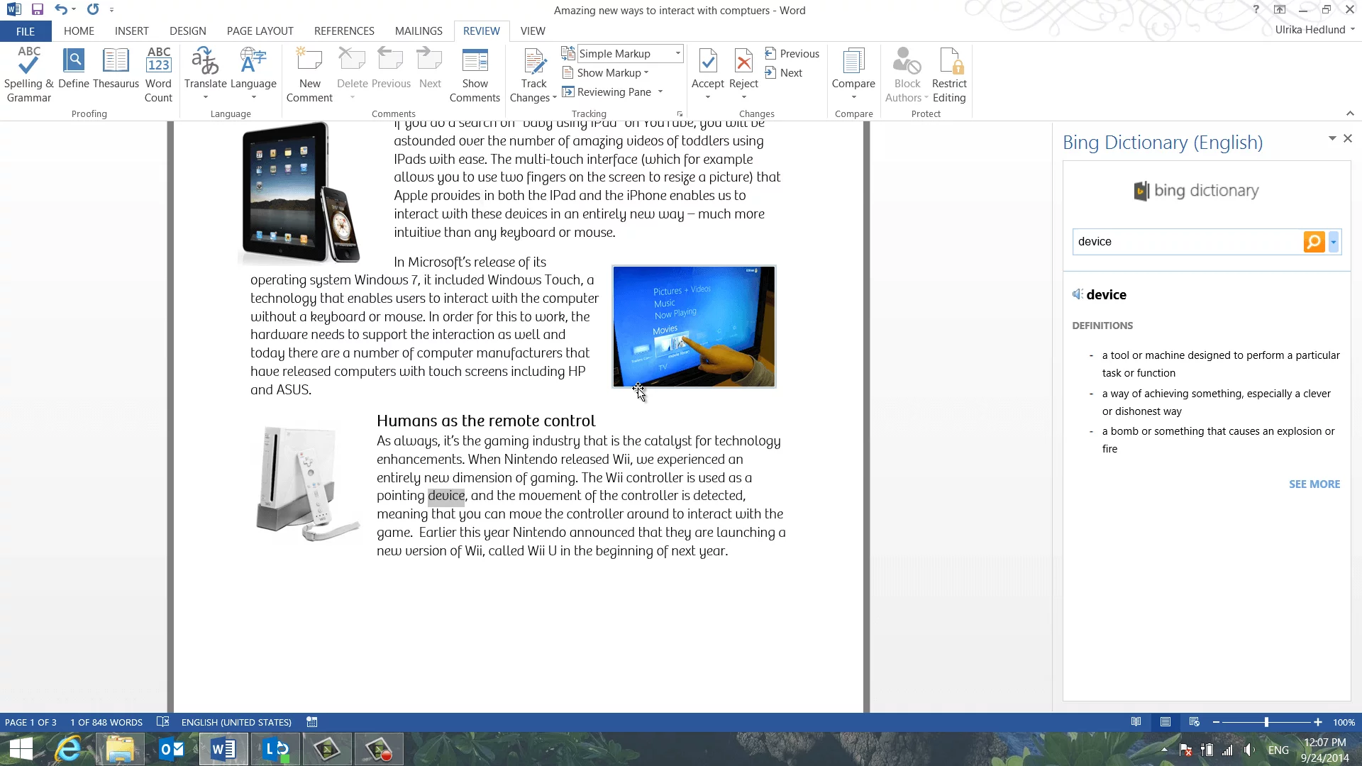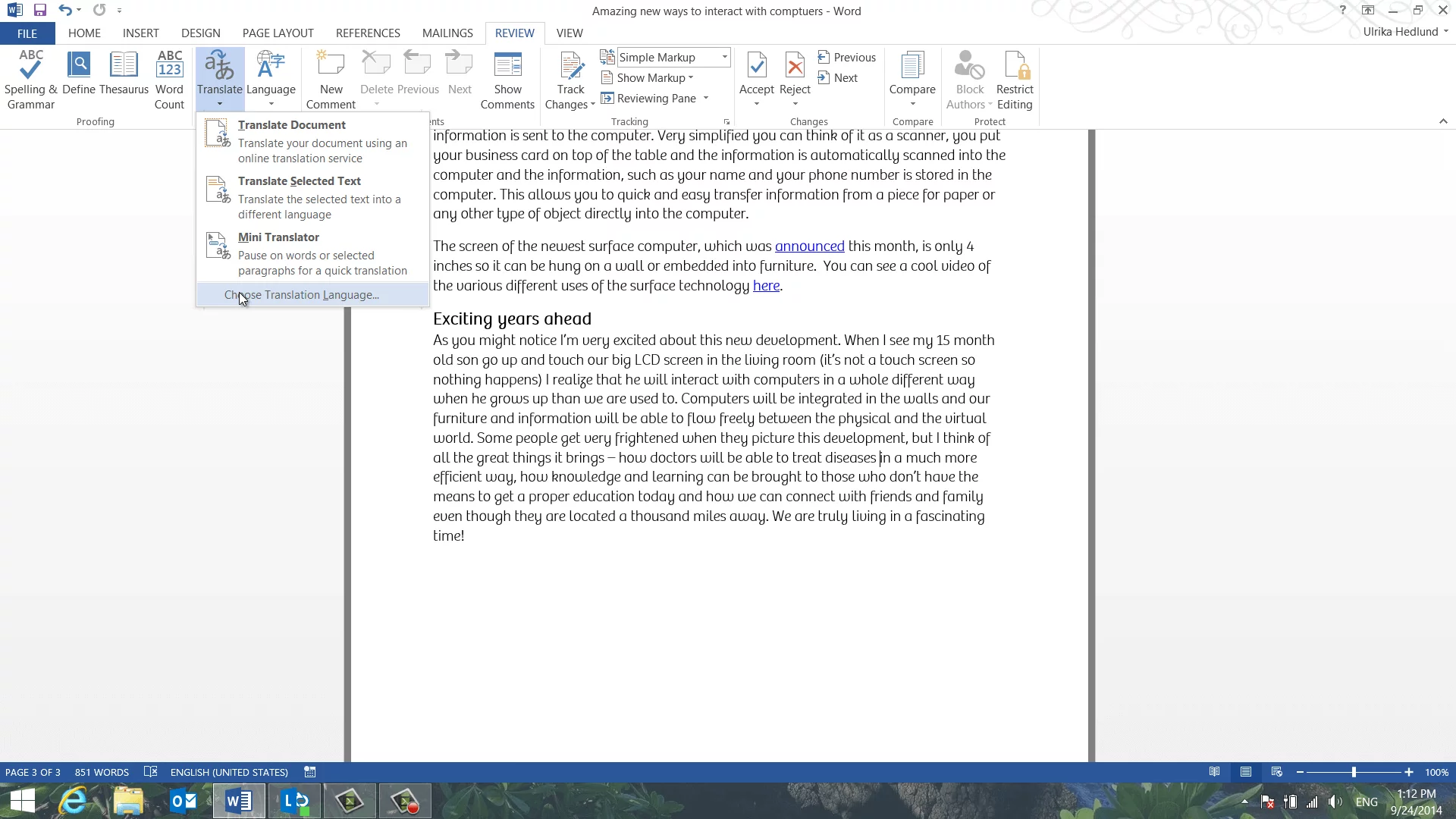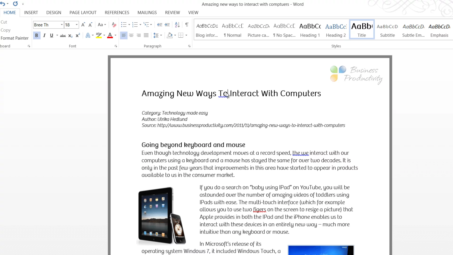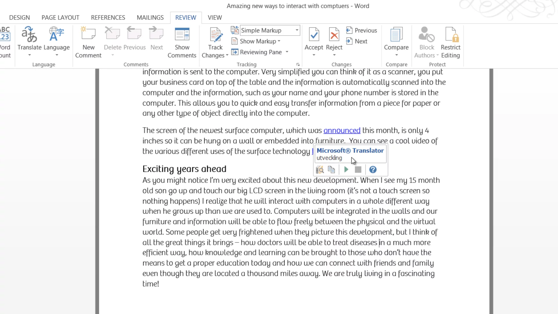 When you’re working on a document it’s very beneficial to ask others to review it for you and to track the changes they make to the document. In Word 2013 Microsoft has introduced a new, cleaner view of tracked changes and a richer experience for adding comments and replying to comments. Let’s have a look!