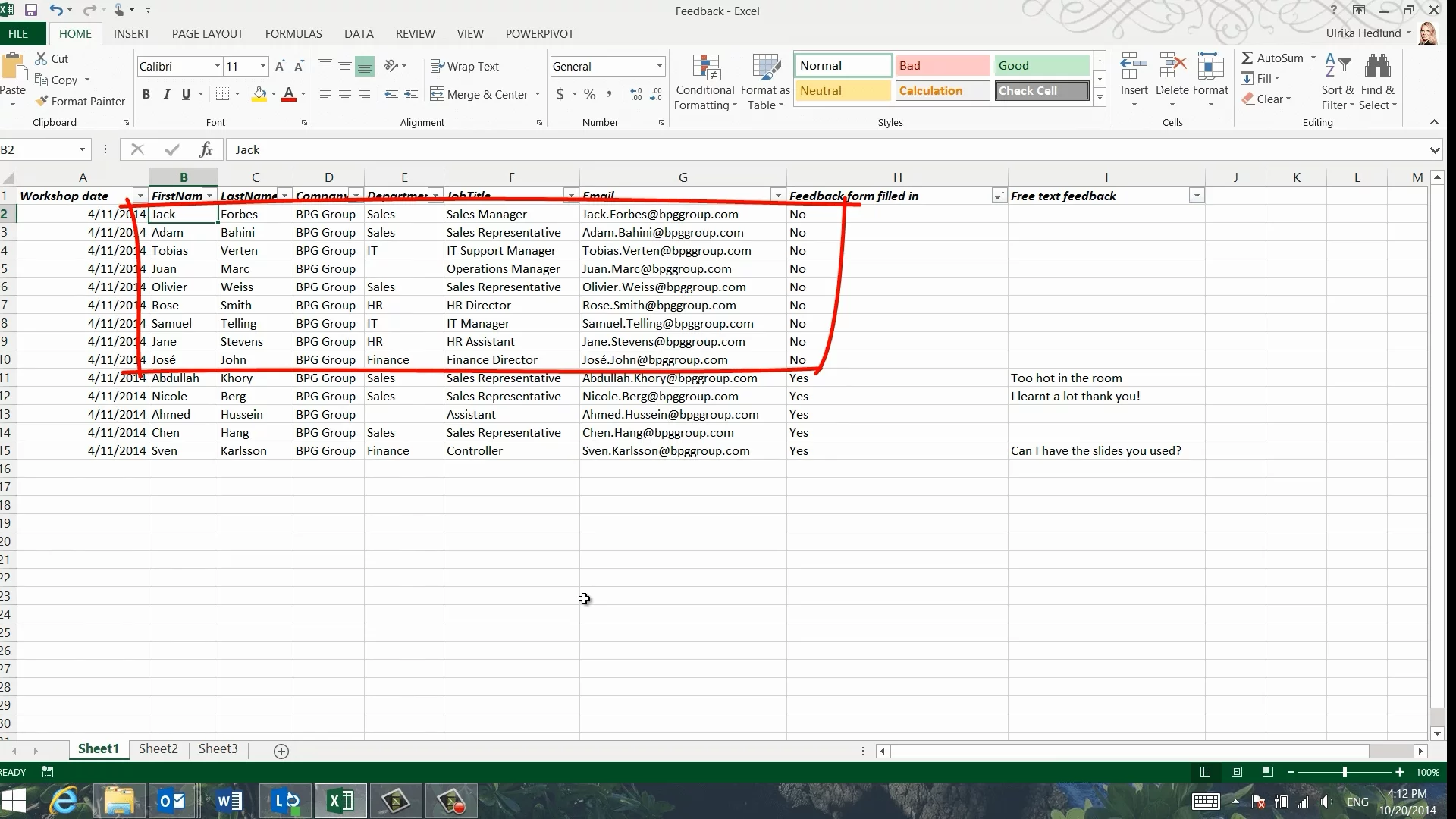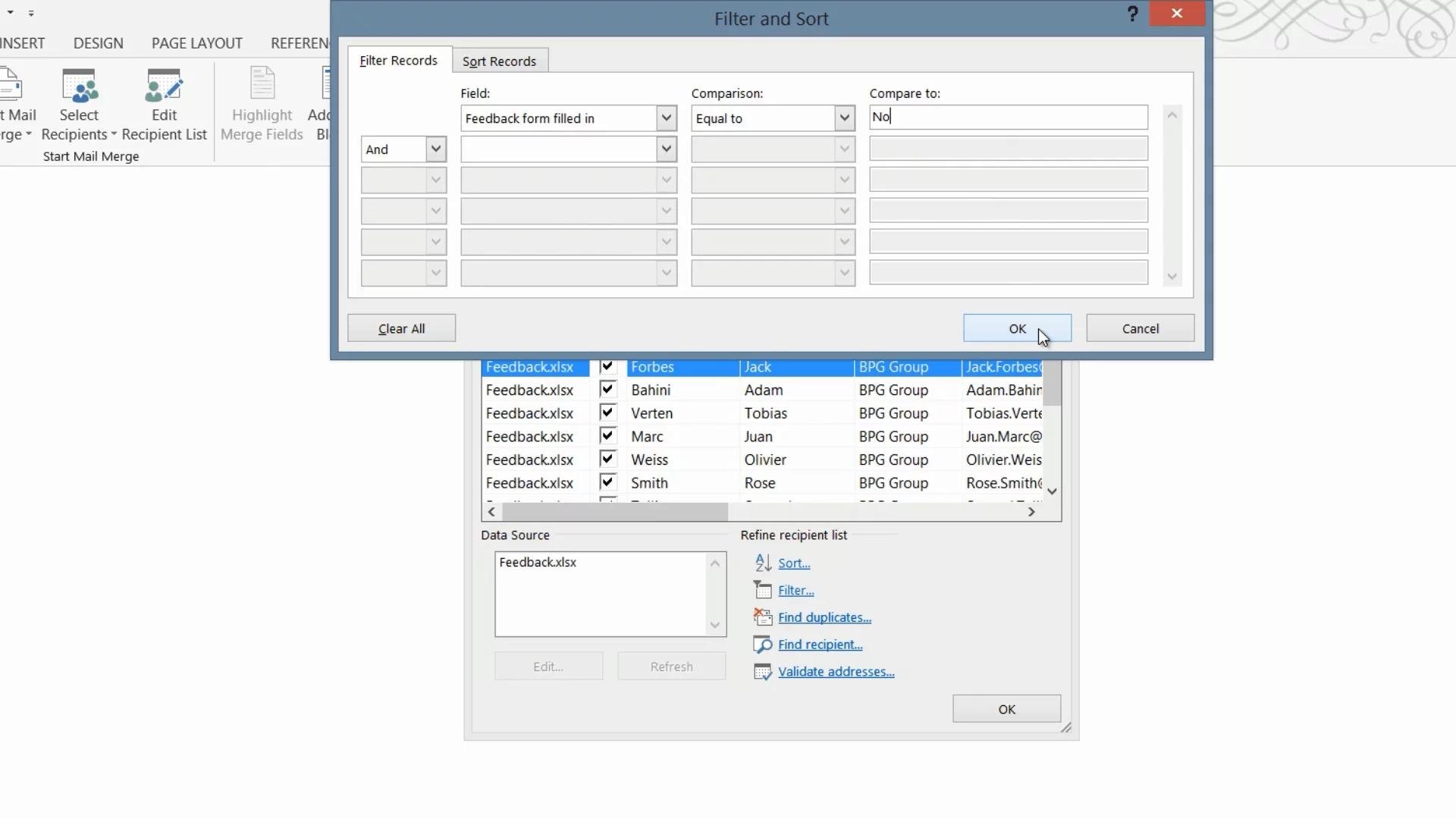 Finally, each of the participants will be assigned to a team, Team number 1 or Team number 2, depending on which department they belong to. So I’m going to add some logic to the letter to assign each participant to the right team.