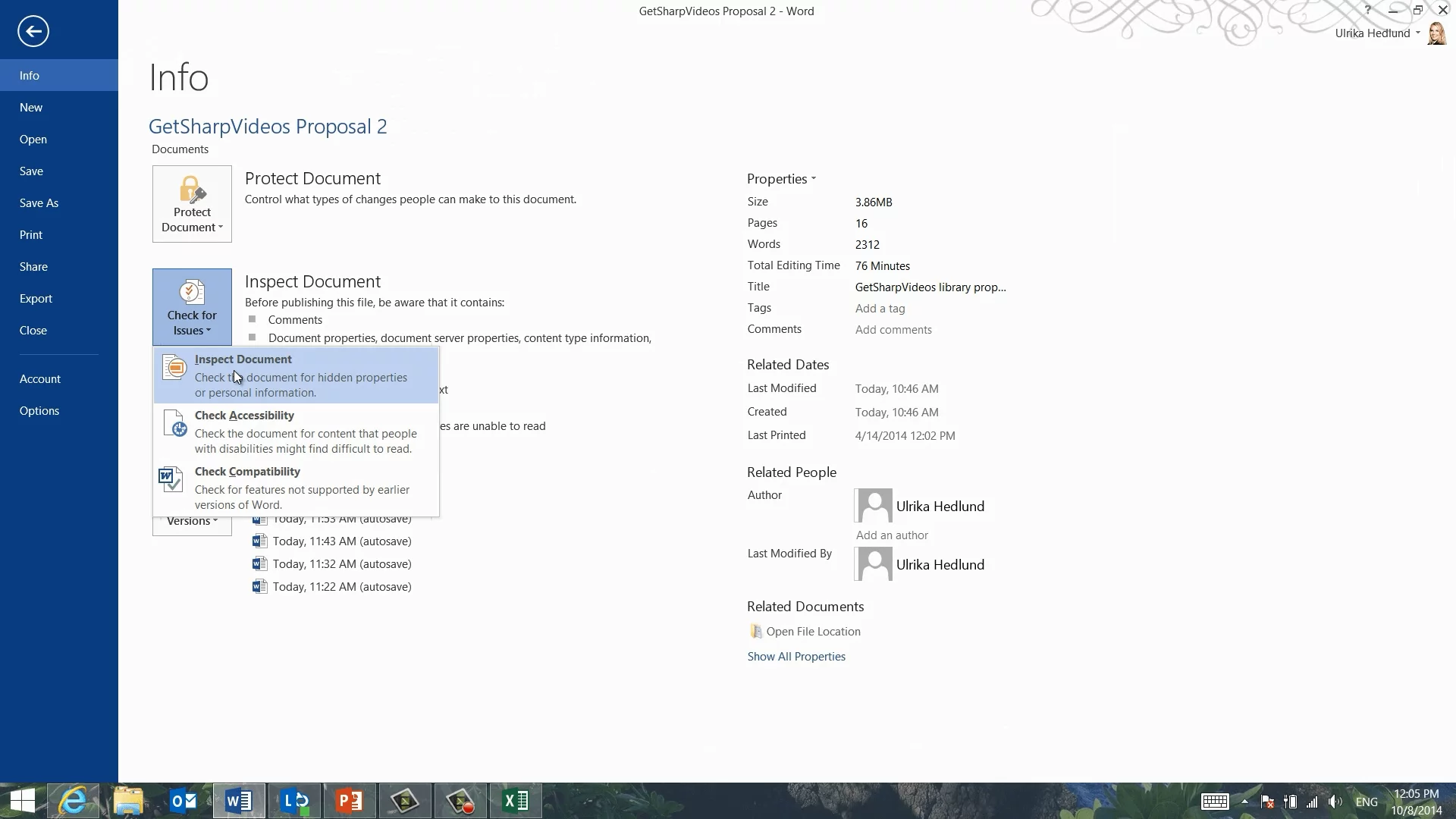 Another great way to make sure that you don’t have any hidden comments or changes is to inspect the document. To inspect your document click the “FILE tab, “Check for Issues” and select “Inspect Document”.