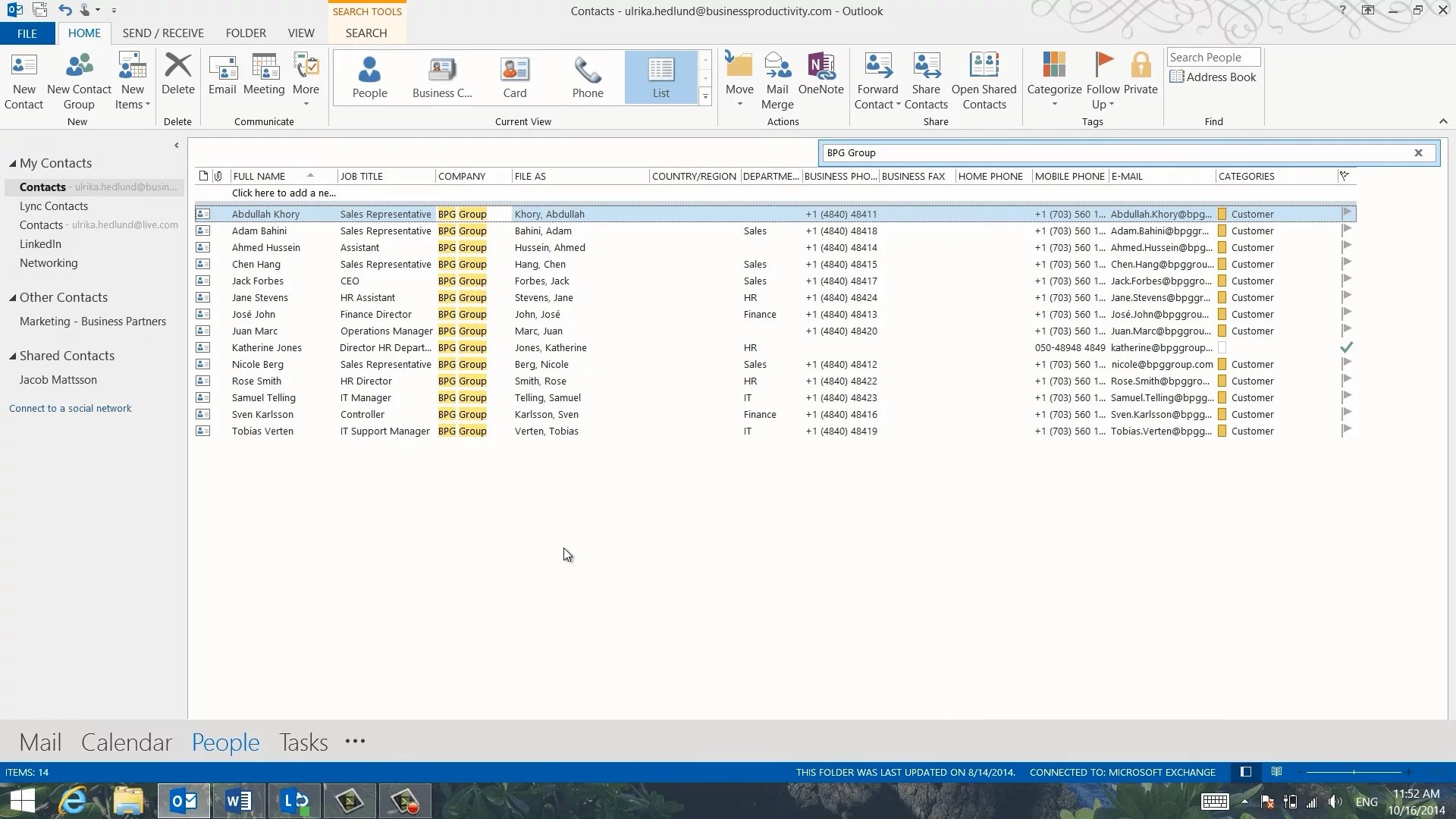 When I refresh the document in Word, I get a notification that two other authors are editing the document. If I click the little people icon in the Status Bar I can see that both Nourah and Jacob are editing the document. I can see from their green color status that they are online and available using the real-time communication platform Lync.