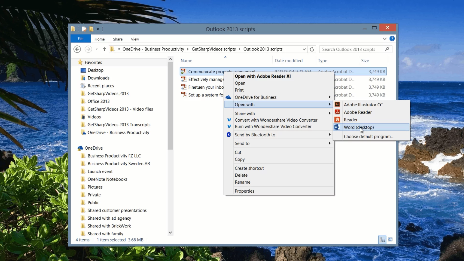 Sometimes you need to make changes to PDF documents. Here I have some other scripts I have written that I would like to apply my newly created style too. The problem is I only have them as PDF documents. In Word 2013 you can open up and edit PDF documents. To open up a PDF document in Word, right-click the PDF document and select to “Open with” Word.