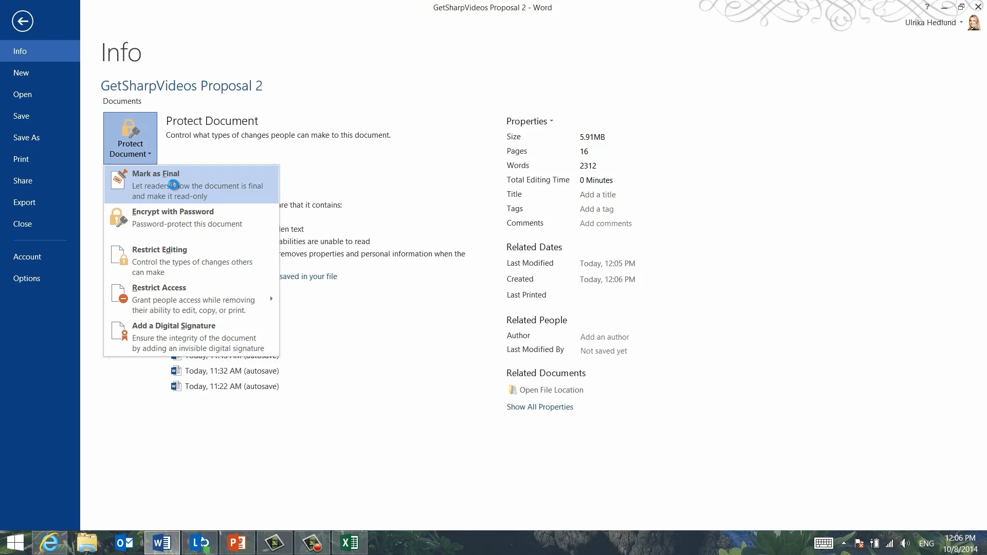 As a final step, I’ll go to the “FILE” tab, Click “Protect Document” and then “Mark as Final”.