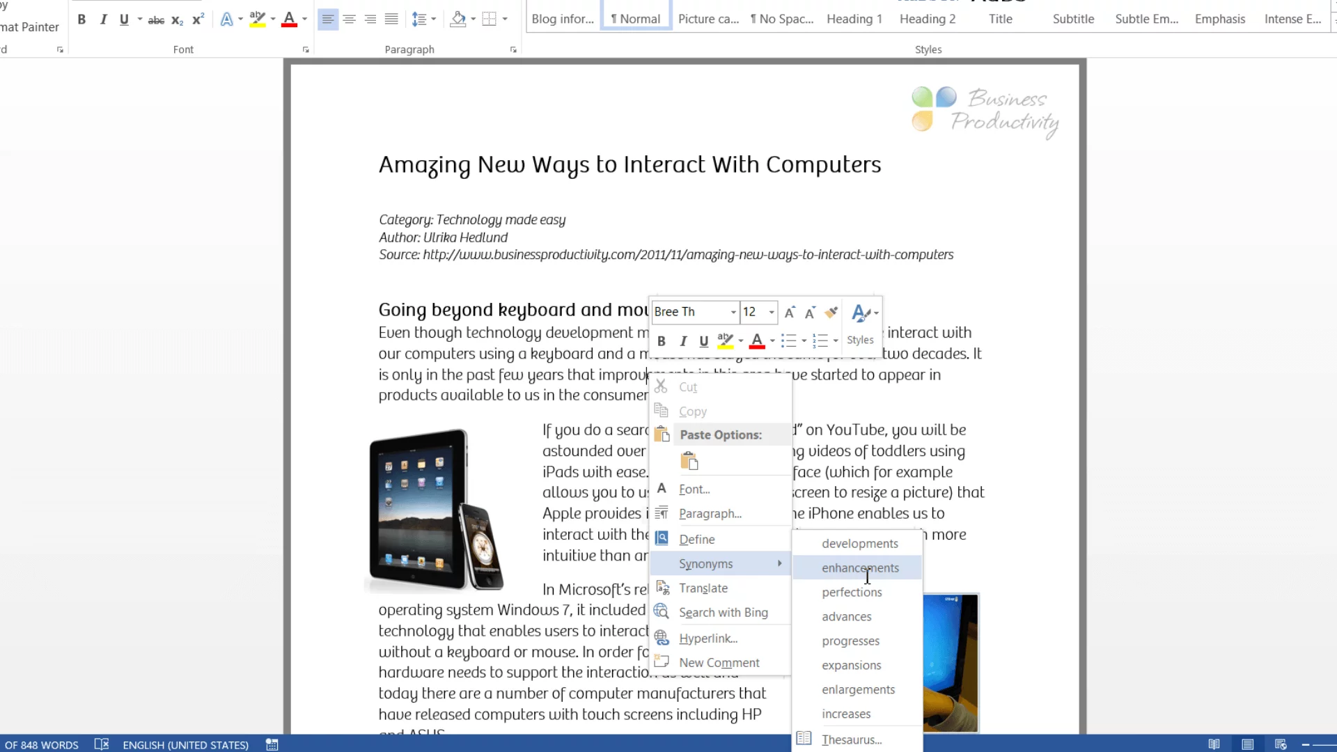 Yesterday I sent a blog article called “How to deliver a successful presentation” to Jacob for him to review. Here he has sent me the document with his changes. I’ll open it up to see what changes he’s made. Unfortunately, the Track Changes wasn’t turned on, so there’s no way for me to know what changes he’s done to the document. Luckily there is a way for Word to find these changes by using the compare tool.