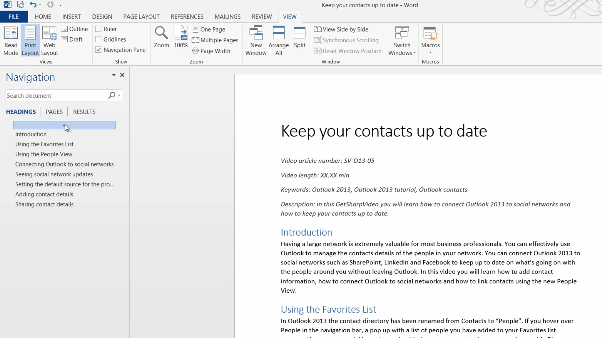 There are a number of built-in capabilities in Word that can help you add structure to your document. By using styles you can more easily navigate your document and move things around. For years you have been able to save Word documents as PDF, and in Word 2013 you can now also edit PDF documents. Let me show you.