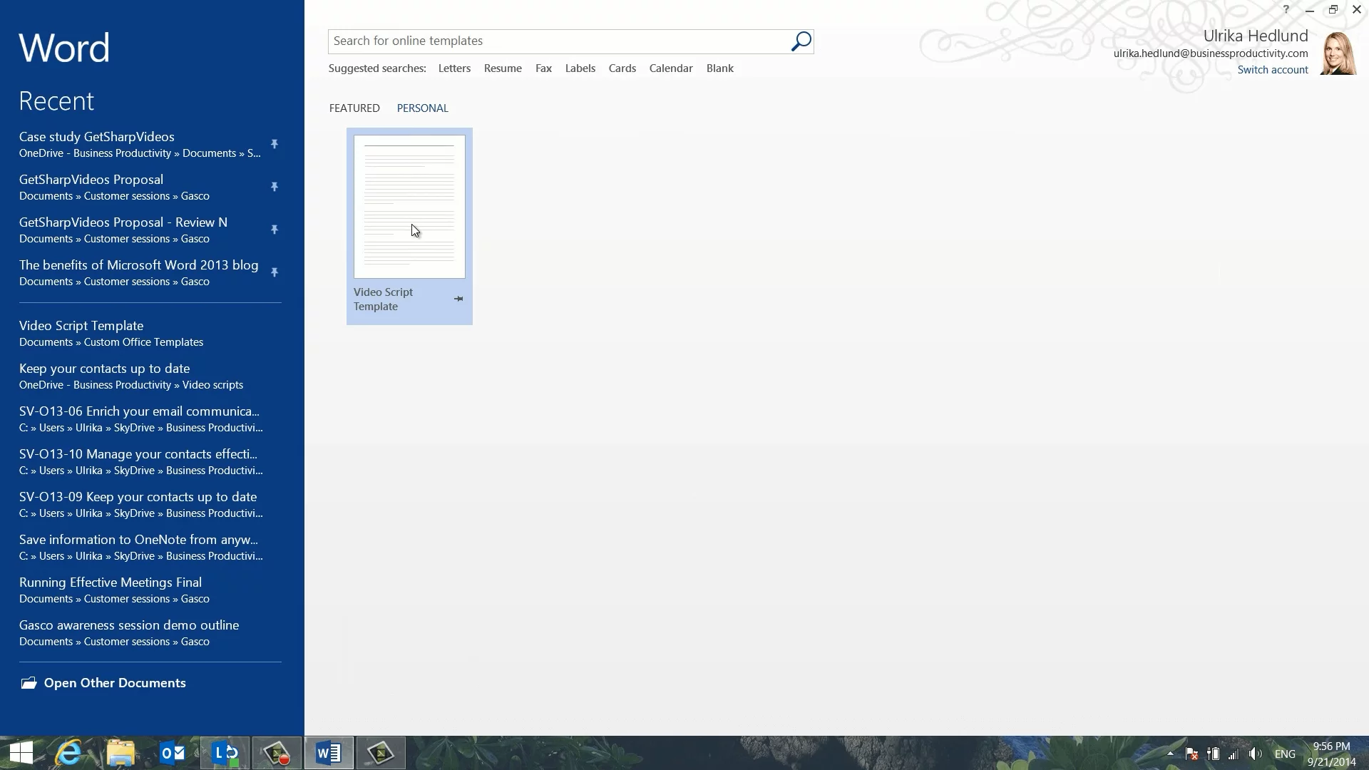 Next time I open up Word, my template is available under the “PERSONAL” section on the start page.